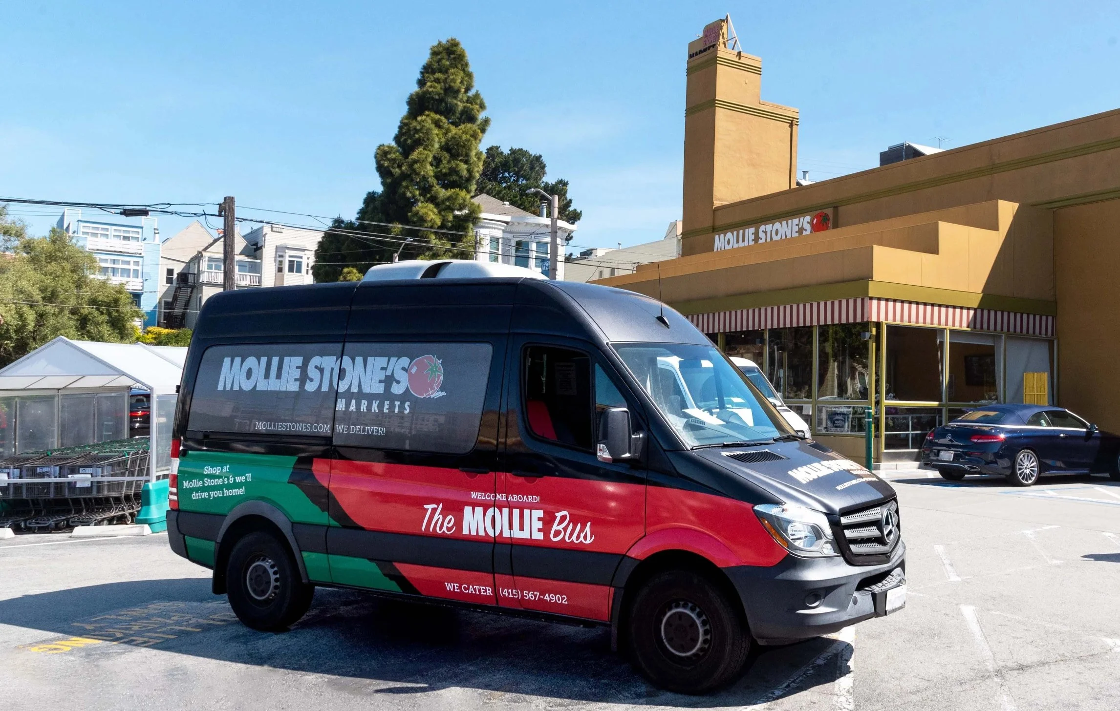 I designed and created all store signage for Mollie Stone’s Market, a San Francisco Bay Area specialty grocery store chain, including posters, pole banners, billboards, and point of sale signage for all departments, along with brochures, buttons, bags, and even a van wrap for the Mollie Bus! Below is an assorted selection of some of my favorites.